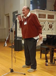 Very early Honorary Life Member Professor Michael Ewens speaking [photo, Lis Bergmann]