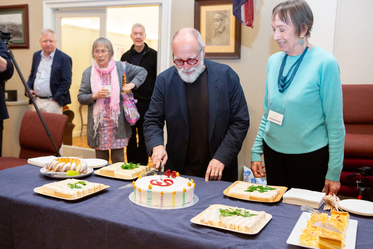 Enjoying cake and champagne [photo, VP Mike Day]