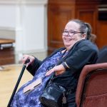 Early member Jennifer Ferns speaking [photo, Lis Bergmann]