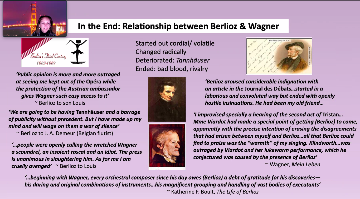 4 May 2022: Erica Miner, award winning American author, scriptwriter, lecturer & journalist via zoom – Wagner & Berlioz Zoom talk on ‘Wagner & Berlioz’ by Erica Miner Erica Miner Outline of the talk Erica Miner Erica Miner Some of the participants in Erica Miner’s zoom Zoom talk on ‘Wagner & Berlioz’ by Erica Miner Erica Miner Outline of the talk Erica Miner Erica Miner Some of the participants in Erica Miner’s zoom
