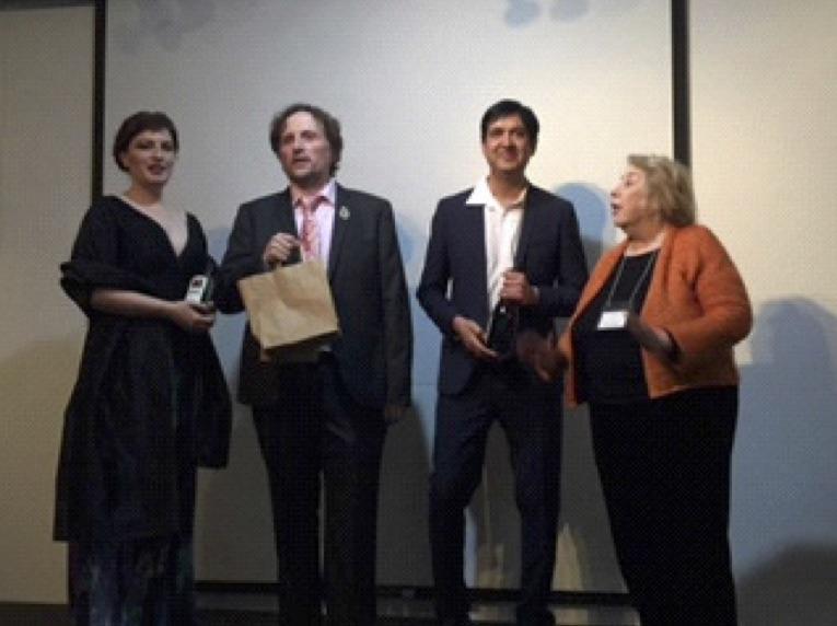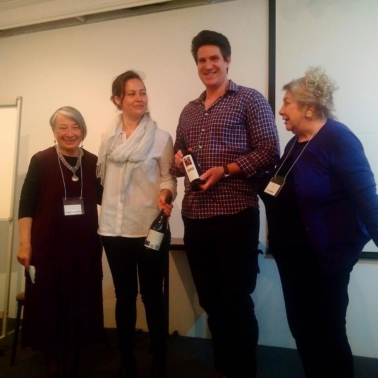 19 November 2017: Leona Geeves presenting the artists with wines from our sponsor Brangayne of Orange: Laura Scandizzo, Francis Greep, Sitiveni Talei & Rebecca Moret