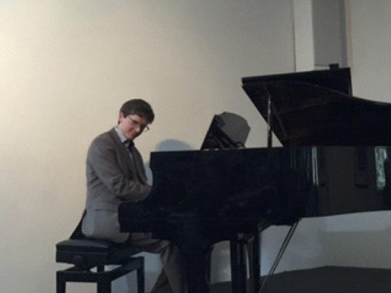 30 July 2017: Dr David Larkin at the piano during his seminar presentation on Wagner’s ‘Parsifal’ [photo, Pauline Holgerson]